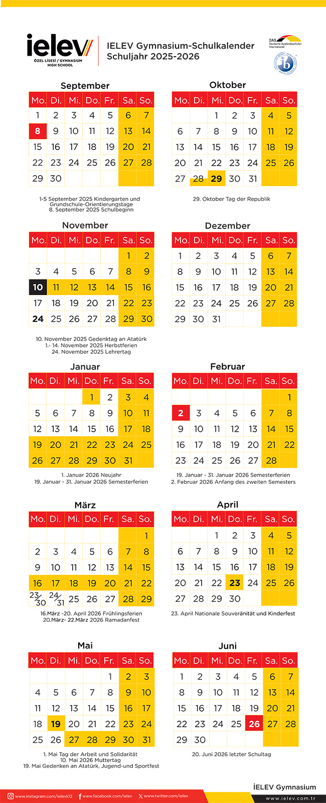 Unterrichtszeiten und Schulkalender