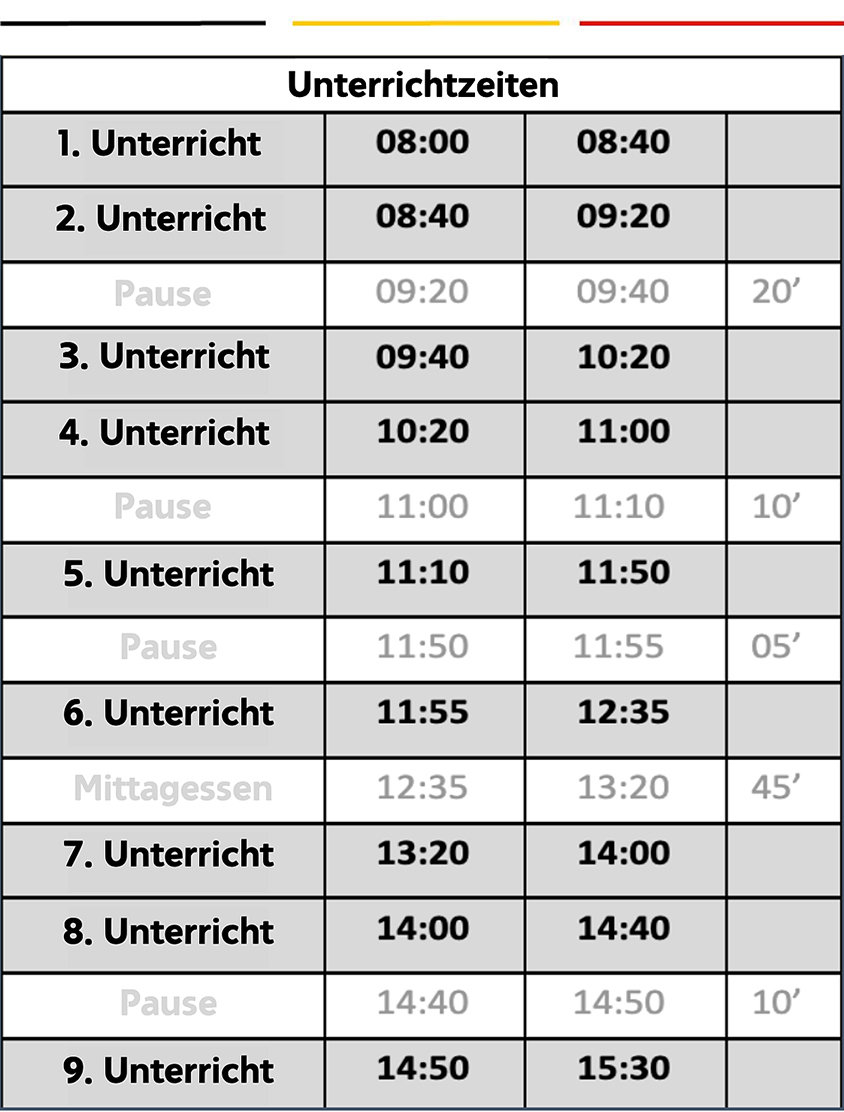 Unterrichtszeiten