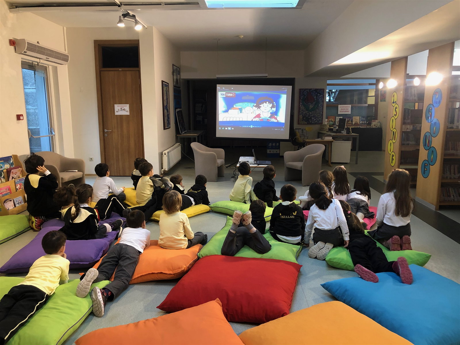 İELEV Özel 125. Yıl İlkokulunda okumayı öğrenen 1. sınıf öğrencilerimize 6- 8 Kasım 2019 tarihlerinde kütüphane kuralları anlatılarak kütüphane kartları dağıtıldı. Etkinlik sonunda ise hep beraber “Caillou Kütüphaneci” filmi izlendi.