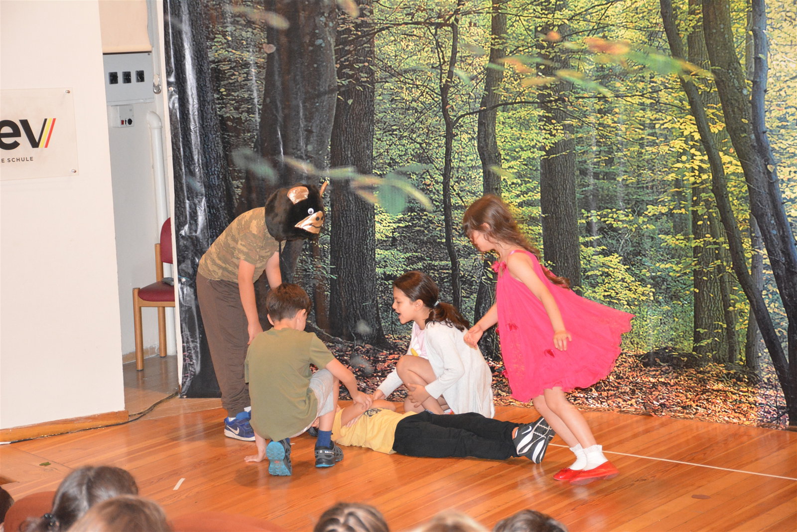 Am 11. Juni 2019 haben die 2. Klässler ihr Theaterstück „Mogli“, das sie im Rahmen des Deutschunterrichts vorbereitet haben, in unserem Konferenzsaal aufgeführt. Obwohl sie sehr aufgeregt waren, meisterten sie ihren Auftritt mit großem Erfolg.