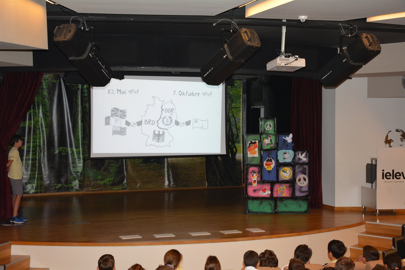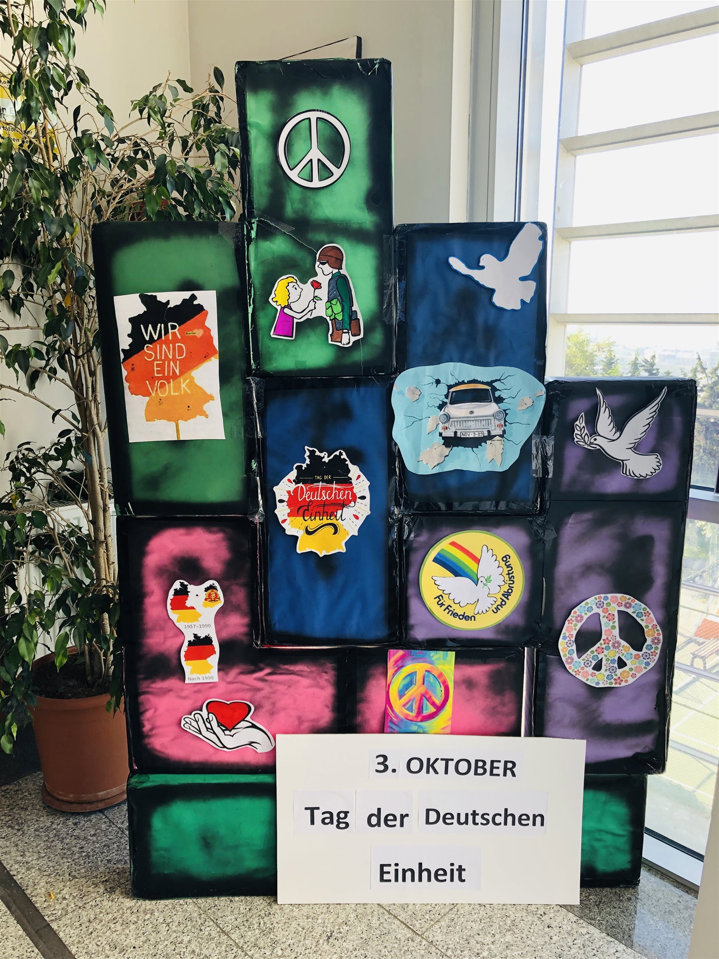 3 Ekim 1990 Almanya’nın tarihinde çok önemli bir gün. Doğu ve Batı Almanya’nın birleştiği gün. Bu önemli günün anısına öğrencilerimizle bunun hakkında bir film izledik. Ardından sembolik olarak Berlin Duvarı’nın yıkılışını sahnede sergiledik ve yıkımını temsili olarak öğrencilerimizle beraber canlandırdık.