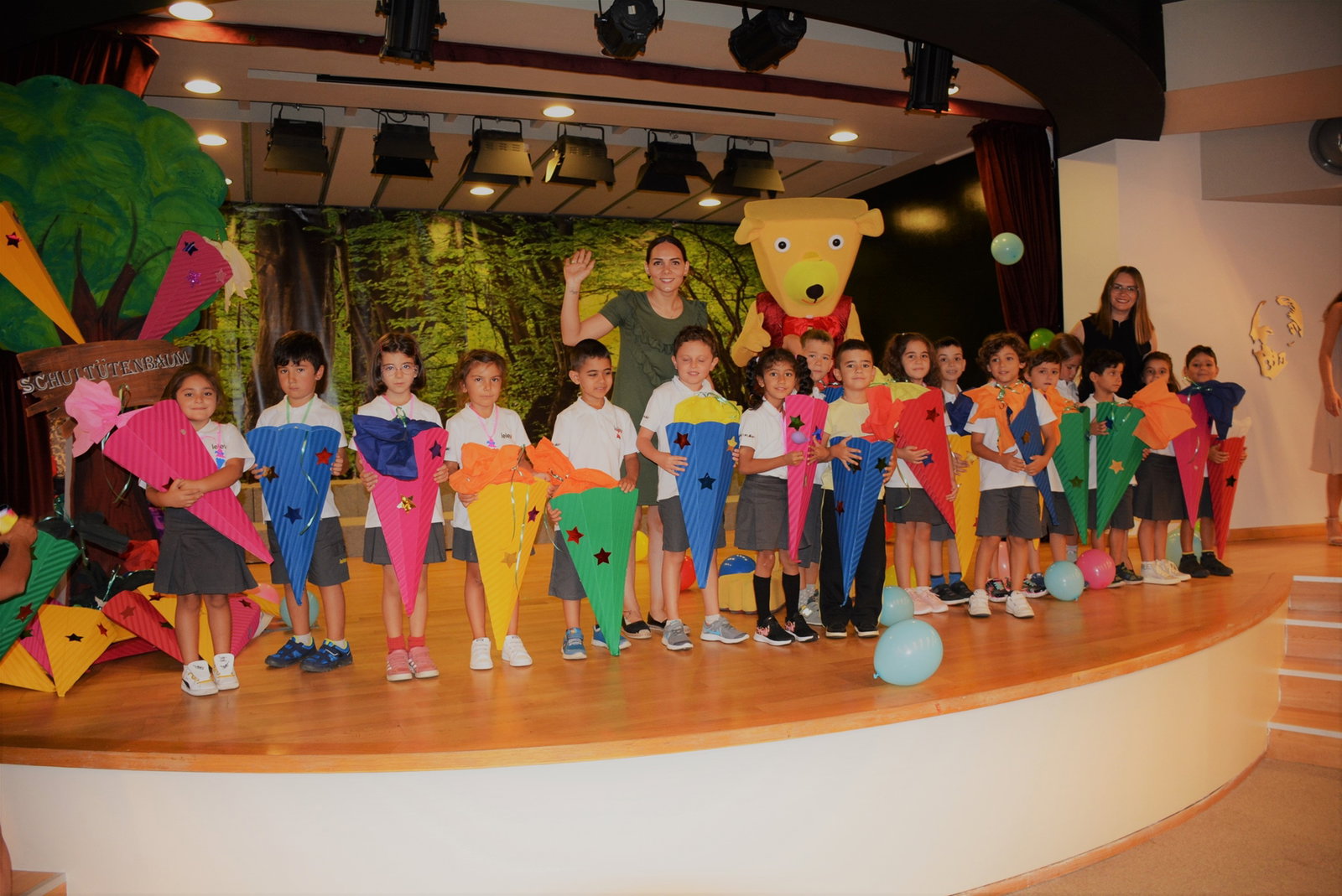 Öğrencilerimize Almanca dersi kapsamında farklı sürprizlerle hazırladığımız rengârenk “Schultüte” leri (Okul Külahı) ve okul külahı şeklinde hazırladığımız kolyelerini sunarken öğrencilerimize, 1. sınıflarımızın Almanca ders kitabının kahramanı “Bruno” etkinliğimize ayrı bir neşe kattı.