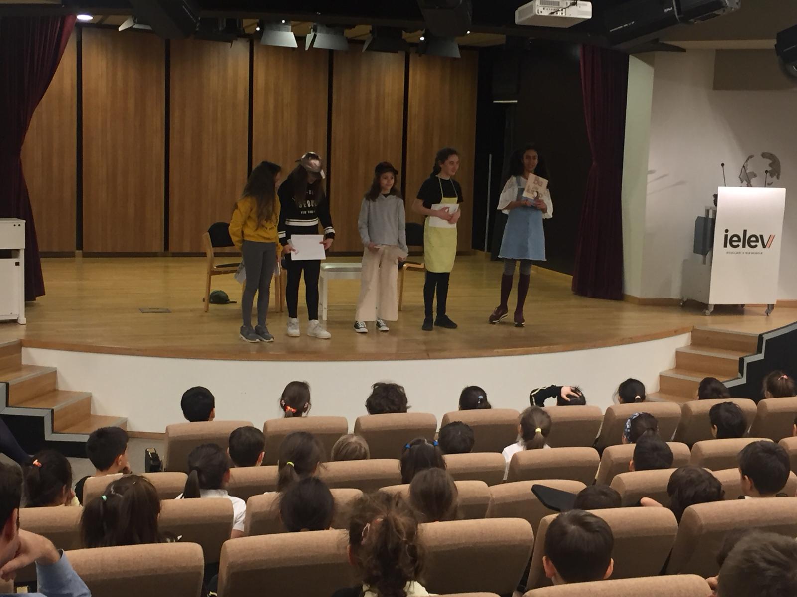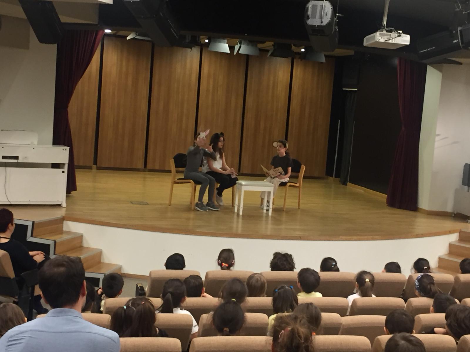55. Kütüphane Haftası ve 27 Mart Dünya Tiyatro Günü kutlamaları kapsamında kitap kokusunun, yazısının, kitabın sayfasını çevirerek okuma keyfinin ve hayal gücünün sınırlarını genişletmede kitapların önüne hiçbir teknolojinin geçemeyeceğinden hareketle Yazar Lane Smith’in “Bu Bir Kitap” adlı eserinden yola çıkarak dramalaştırdığımız tiyatro oyunumuz ortaokul “Drama Takımı” öğrencilerimiz tarafından 1. sınıf öğrencilerimize sergilendi.