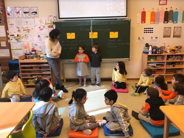 İELEV Anaokulu öğretmenlerimizin aldığı “Çocuklar için Felsefe” eğitimi doğrultusunda; hazırlık sınıfı öğrencilerimiz bu felsefe dersinde “Gerçek mi Rüya mı?” adlı hikayeyi “düşün, eşleş, paylaş” tekniği ile çalıştılar. Hikayeyi resmettiler ve birbirleriyle bilgi paylaşımında bulundular.