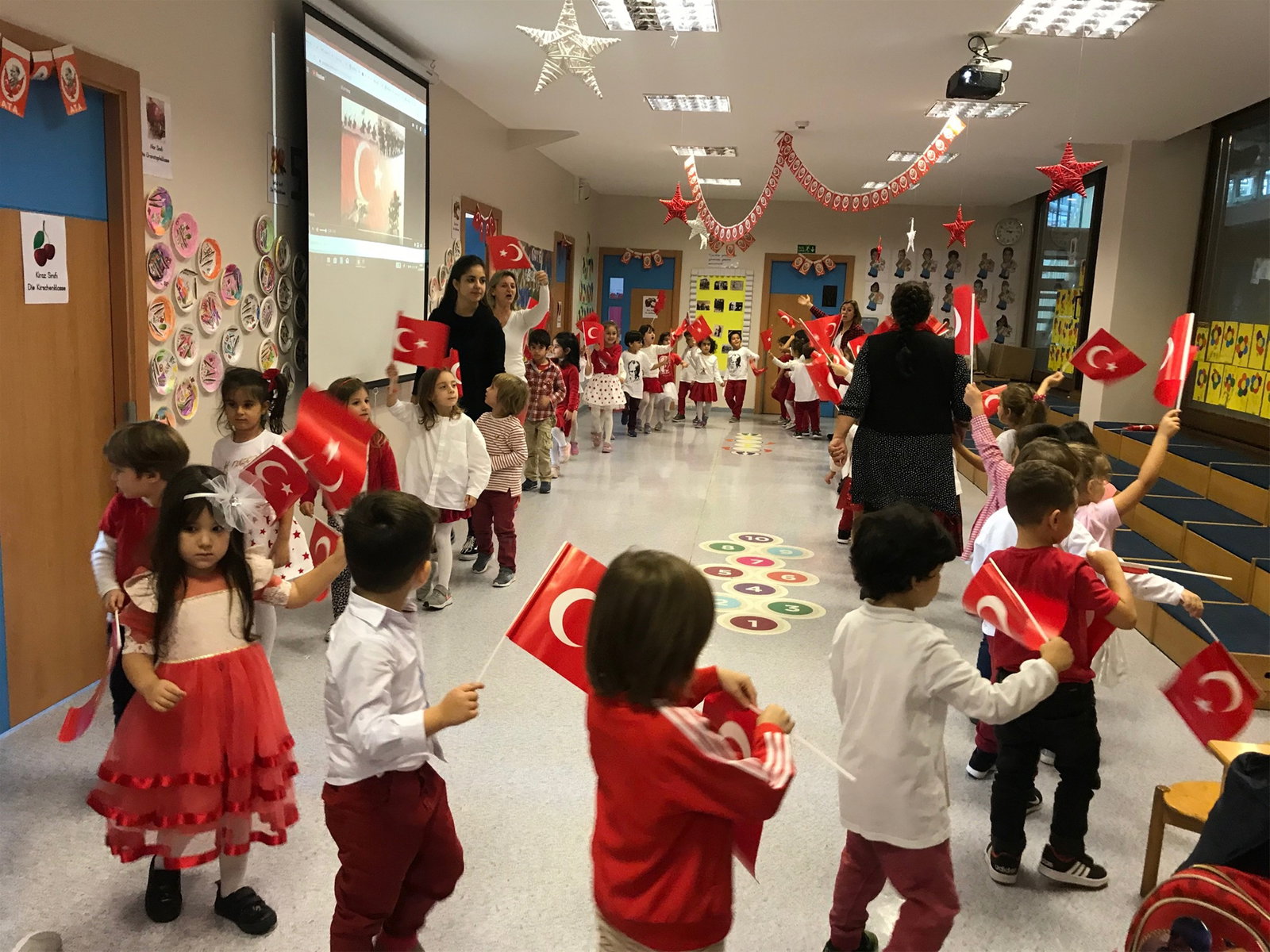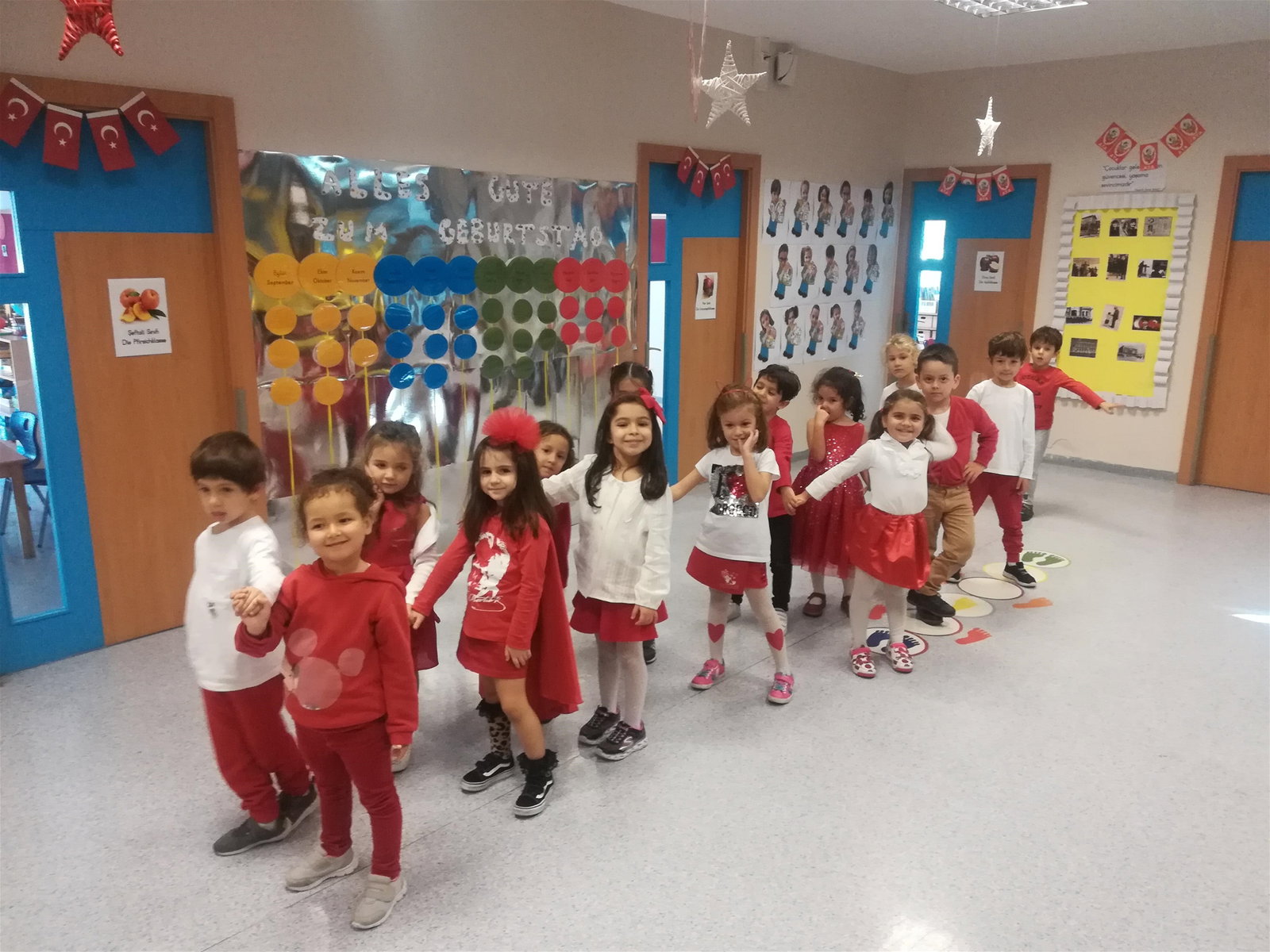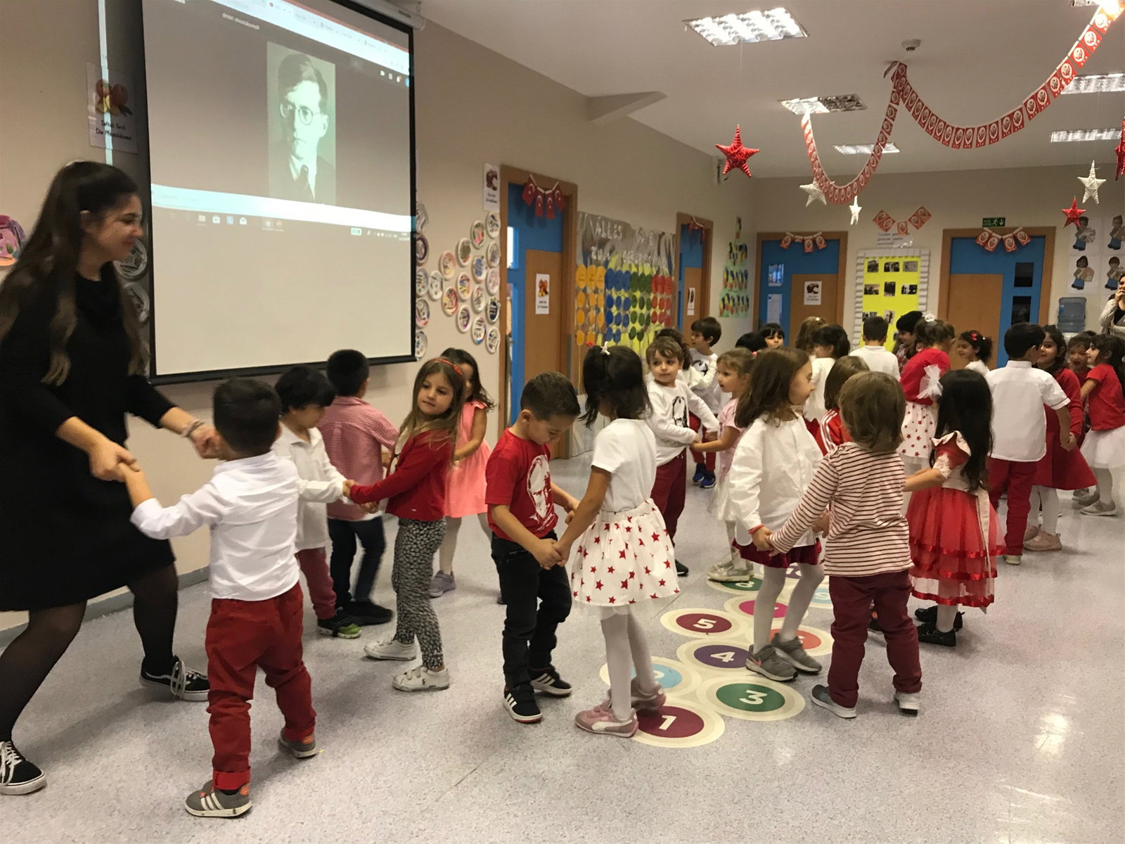 İELEV Ana Sınıfları olarak “Cumhuriyet Balosu”nda, Atatürk’ün Cumhuriyet döneminde katıldığı balo fotoğraflarından oluşan sunumu izledik, vals eşliğinde dans ettik ve ardından 10. Yıl Marşı’nı hep birlikte söyledik.