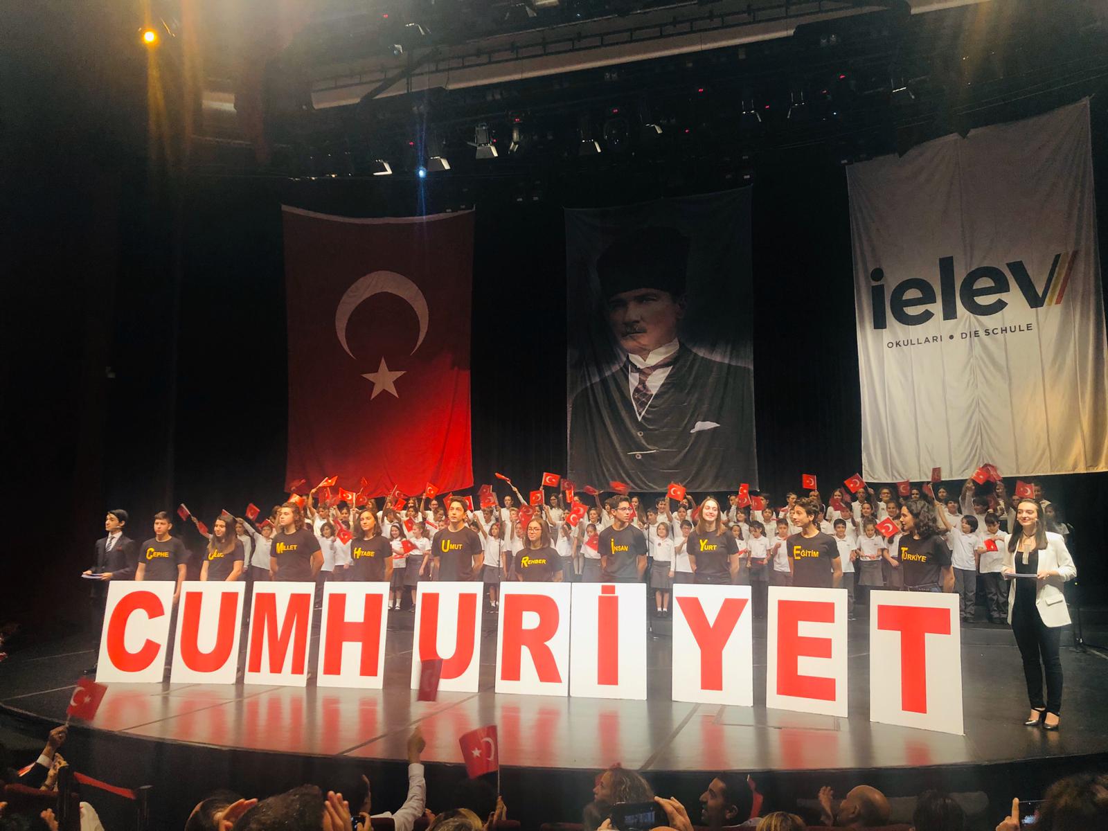 İELEV Özel 125. Yıl Ortaokul öğrencileri şiir, dans, halk oyunları ile İELEV Özel Ortaokulu öğrencileri de vals, modern halk oyunları törene ahenk katarken İELEV Özel Lisesi öğrencileri de söz korosu ve canlandırma ile “Cumhuriyet Gençleri” olarak törenimizde yer aldılar.
