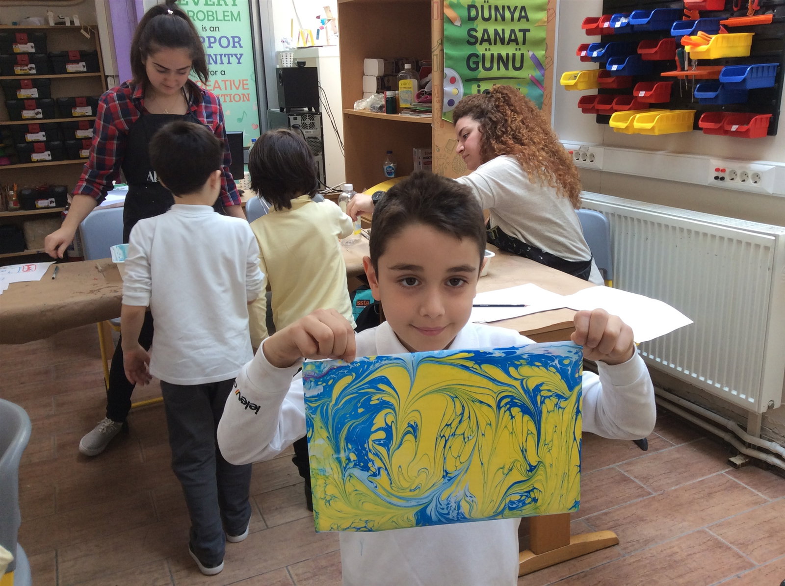 “Dünya Sanat Günü” okulumuzda etkinliklerle kutlanmaya başlandı. 08 Nisan 2019 Pazartesi günü, Art-Deco Firması ve Görsel Sanatlar Bölümü ile ortaklaşa hazırlanan etkinlikte ebru sanatı hakkında 1.sınıf öğrencilerimize bilgi verilerek ebru sanatının özellikleri ve teknikleri üzerinde duruldu. Sonrasında da 1. sınıf öğrencilerimiz öğretmenleri ile ebru çalışması yaptılar.