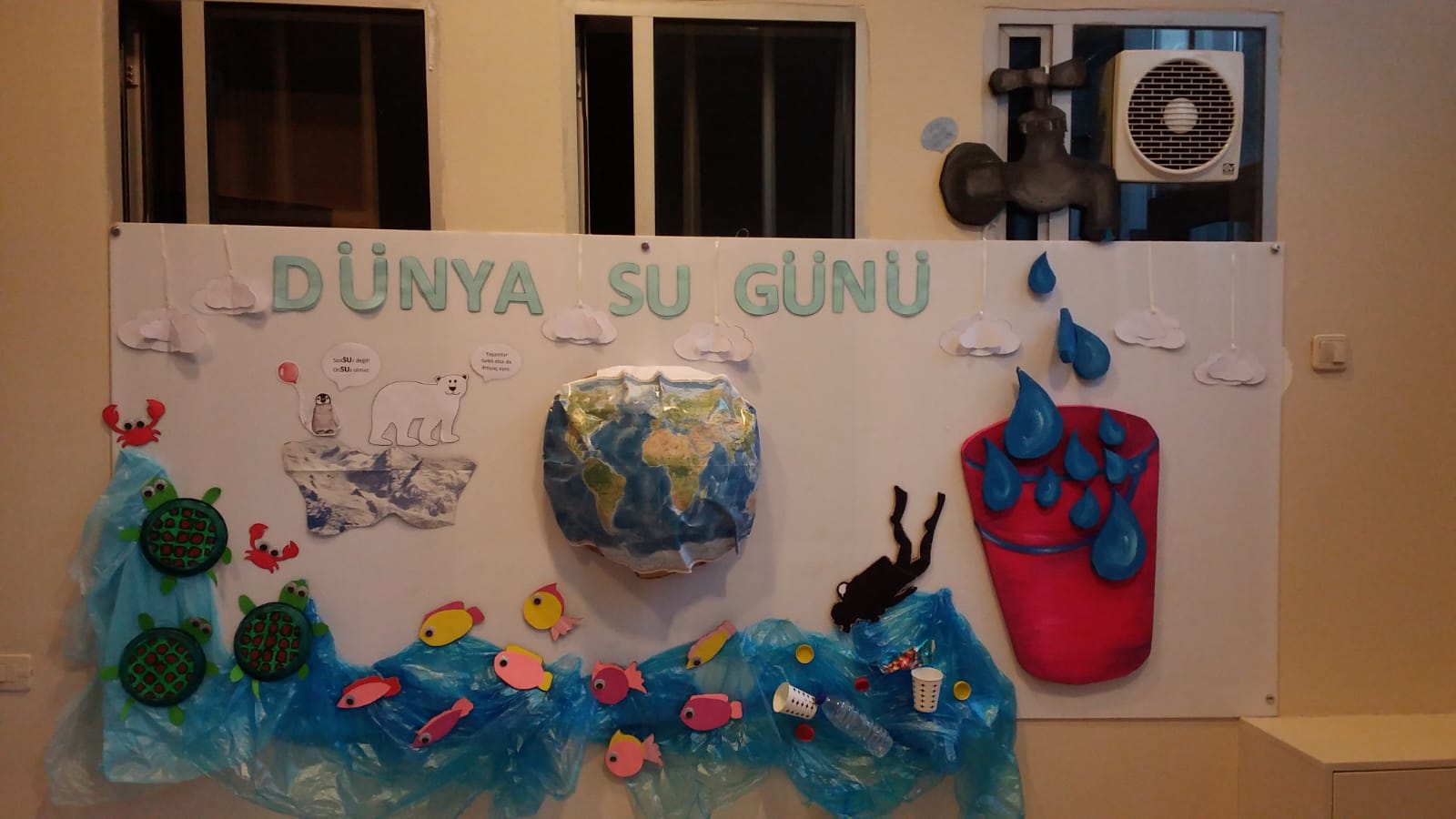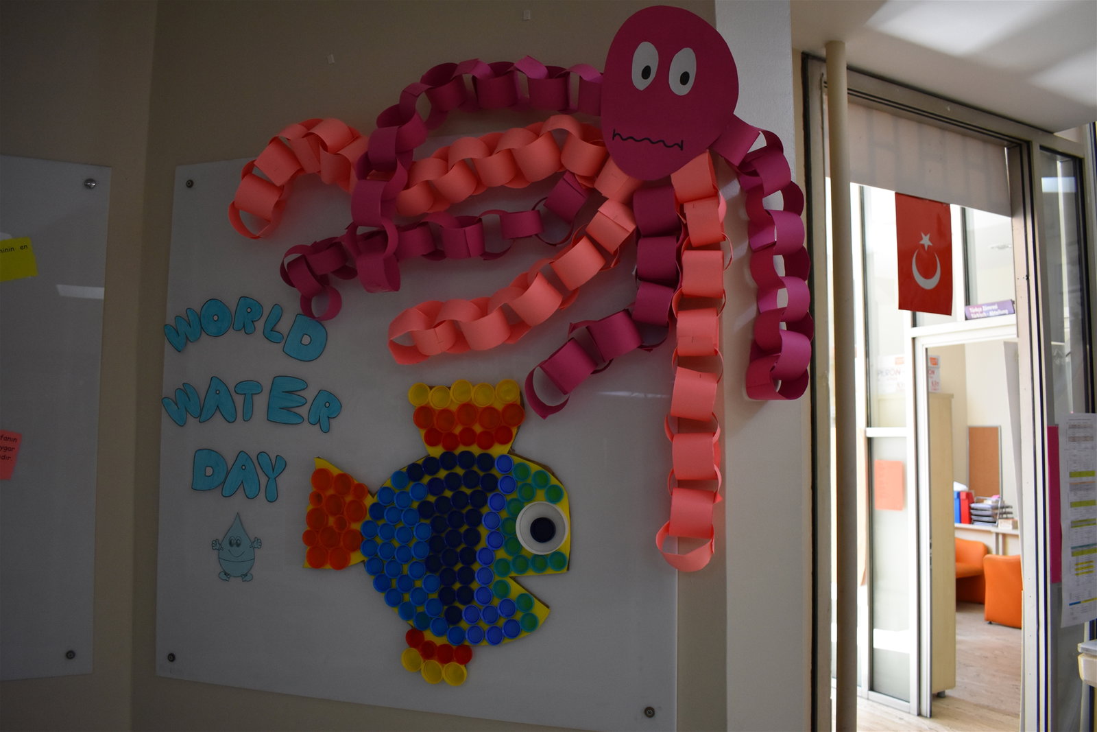 22 Mart 2019 Cuma günü, “Dünya Su Günü”nü okulumuzda etkinliklerle kutladık. Öğrencilerimize “Nature is Speaking” adlı kısa film gösterimi yapıldı. Tüm seviyelerde günün önemi ile ilgili farkındalık arttırıcı etkinlikler düzenlendi.Eko-Bees ekibinin ve Görsel Sanatlar Bölümü’nün hazırlamış olduğu panoda su ile ilgili sloganlar paylaşılarak suyun önemine dikkat çekildi.