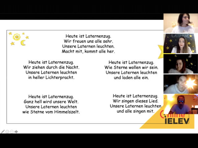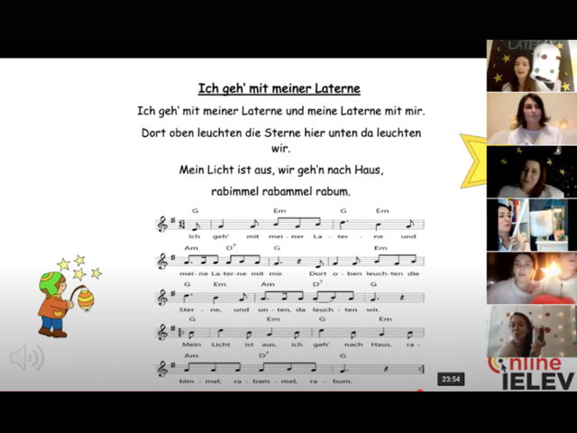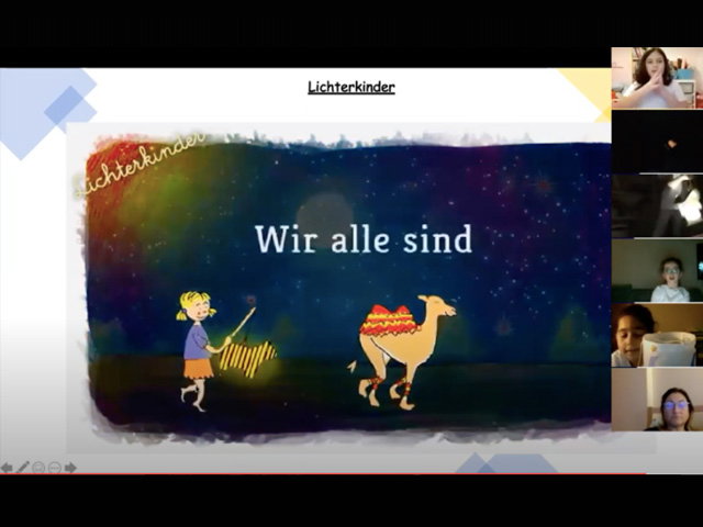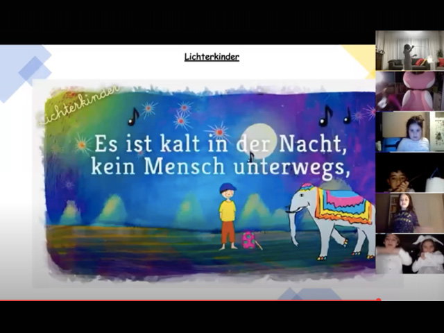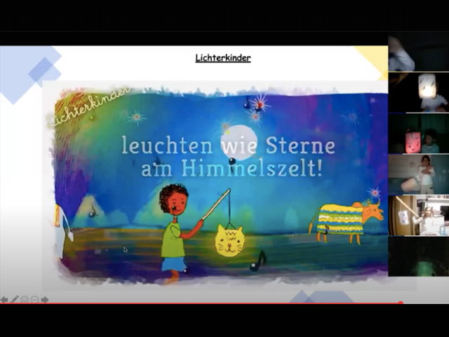 Unseren jährlichen, traditionellen Laternenumzug für die ersten Klassen feierten wir in diesem Jahr mit der gesamten Grundschule über die Plattform Zoom. Wir sangen gemeinsam unsere Laternenlieder und trugen unsere Gedichte vor. Dabei lernten wir deutsche Kultur kennen und erinnerten uns anhand der Geschichte von St. Martin daran, was uns dieser Tag lehren soll; nämlich zu teilen, Gutes zu tun und zu helfen. Die Schülerinnen und Schüler hatten dabei viel Freude.
