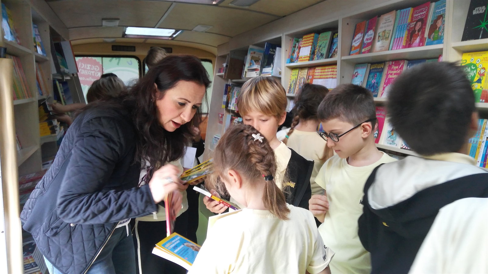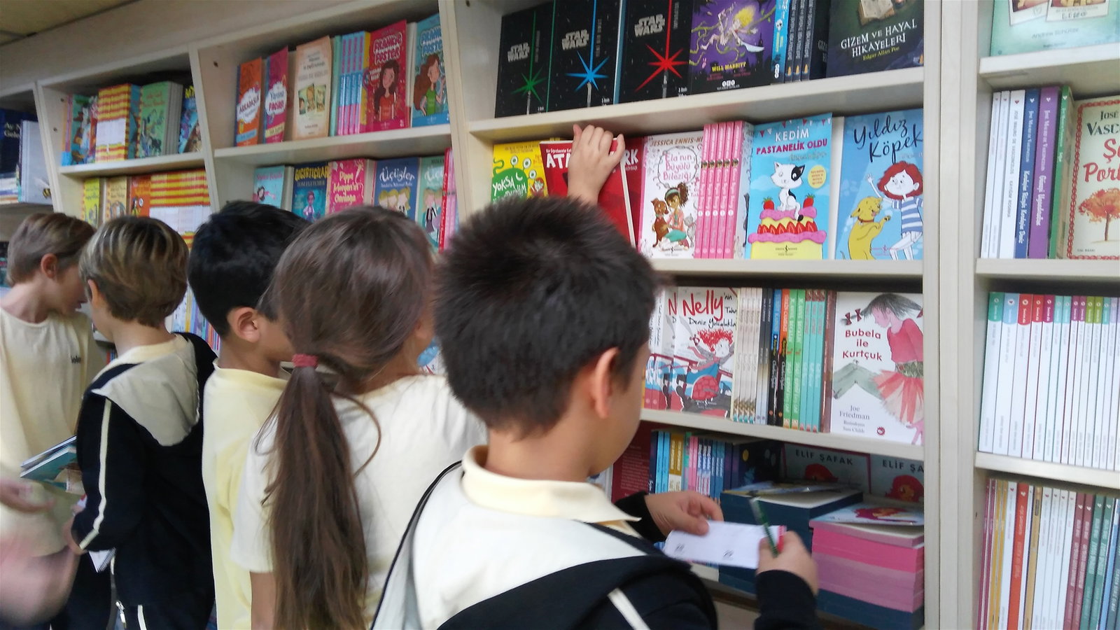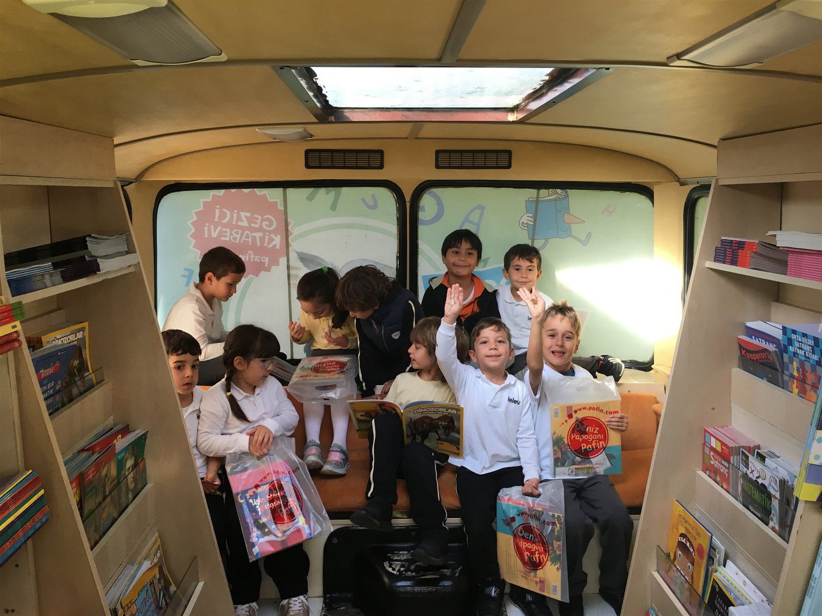 “Dünya Çocuk Kitapları Haftası” nedeniyle Gezici Kitabevi Pafin’i okulumuzda ağırladık. Öğrencilerimiz; yaş seviyelerine göre bilgi kaynakları, hikâye türü yayınlar ve hareketli masal kitapları, birbirinden renkli, güncel ve eğitici nitelikli kitapları inceleme fırsatı buldular. Pafin’de görev alan kitap danışmanları tarafından kitap seçimleri ve kitap içerik konularında öğrencilerimize bilgi verildi, yaş gruplarına uygun kitaplar tavsiye edildi. Öğrencilerimiz öğretmenleriyle birlikte Gezici Kitabevi Pafin’e sınıfça ziyarette bulunarak, ara tatilleri için kitaplarını dilediğince seçtiler.
