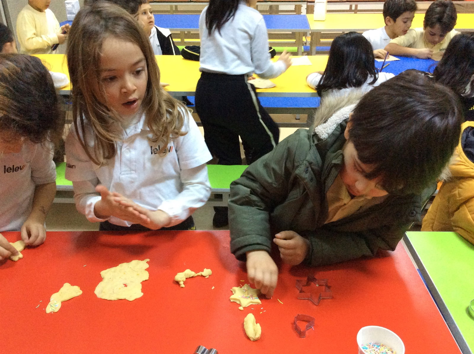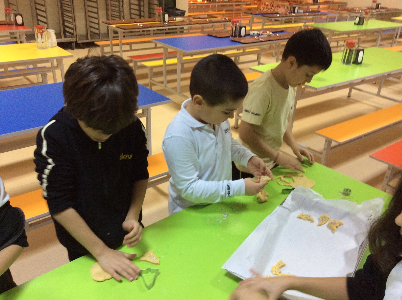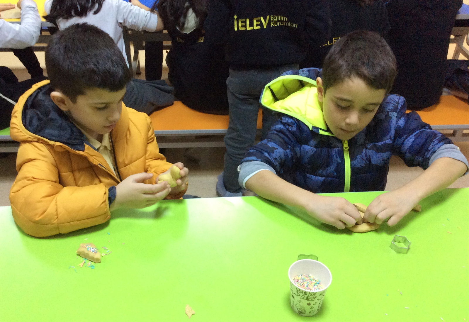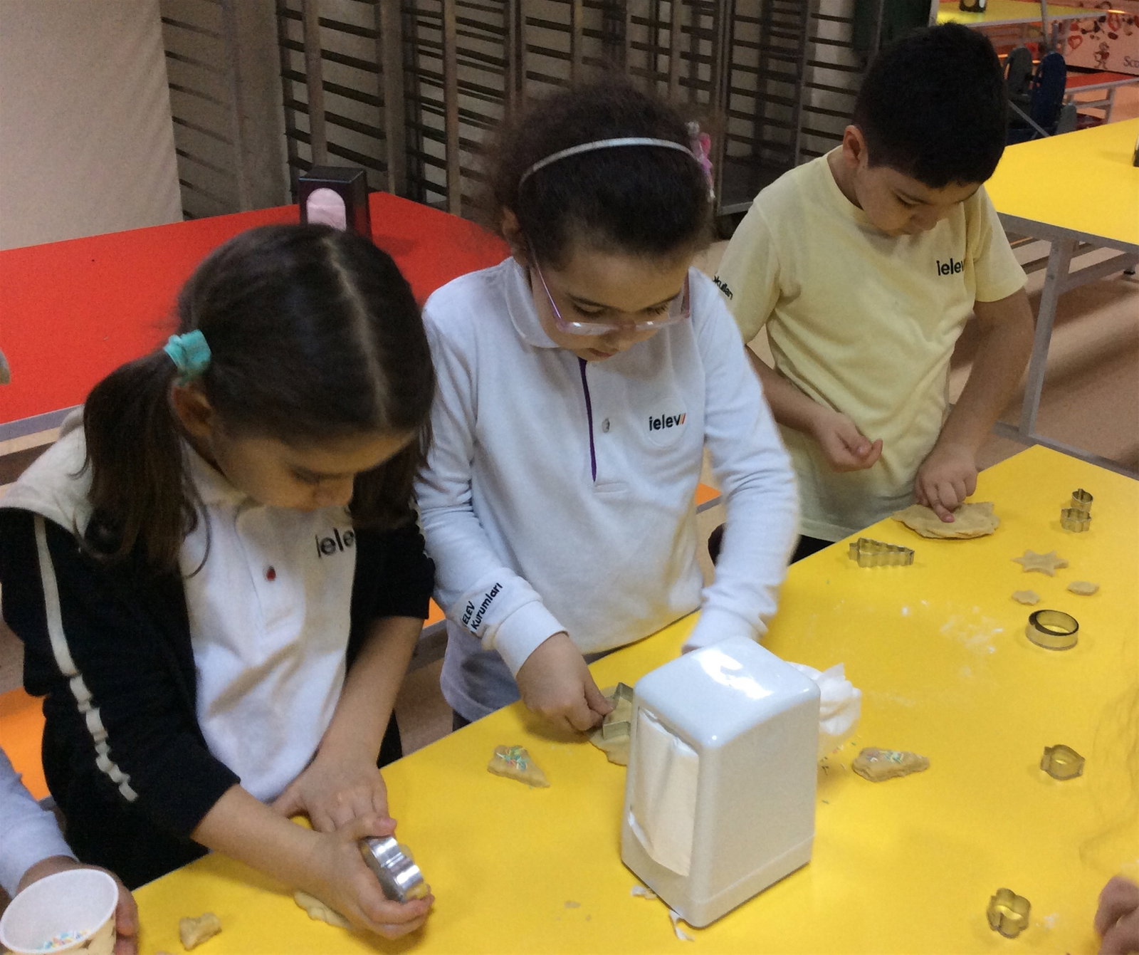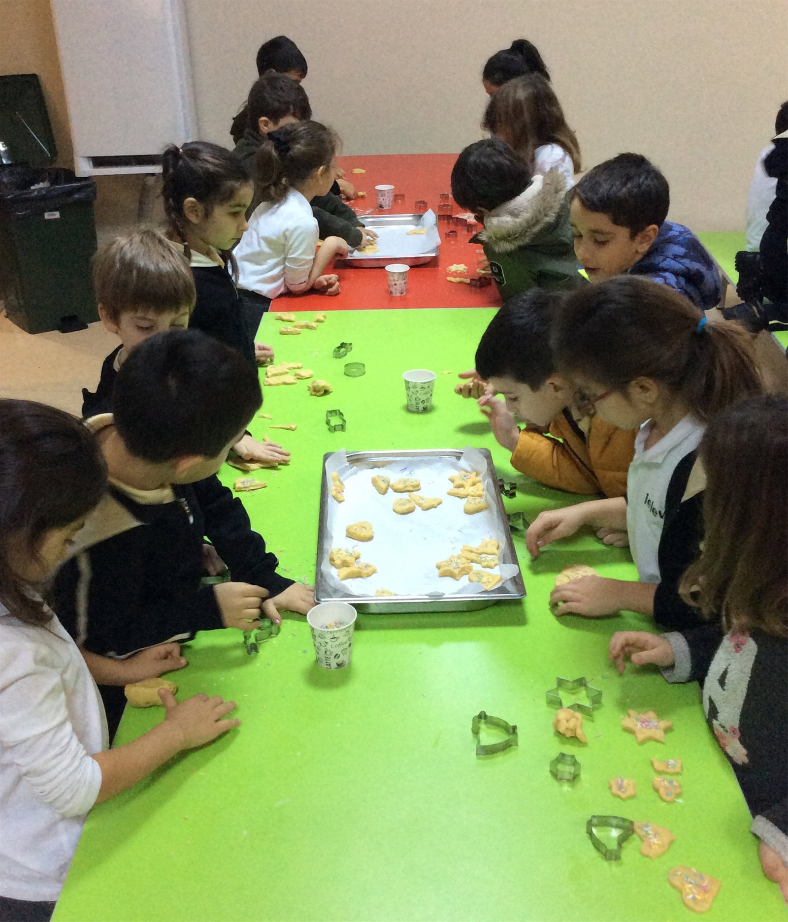 02-03 Ocak 2019 tarihlerinde;1, 2 ve 3.sınıf öğrencilerimizle, Almanca dersinde yemekhaneye inerek yeni yıl kurabiyeleri yaptık. Kurabiye yaparken oldukça neşeli olan öğrencilerimiz, değişik şekillerde yaptıkları ve istedikleri gibi süsledikleri kurabiyeleri daha sonra Almanca dersinde afiyetle yediler. Öğrencilerimizin etkinlik boyunca mutlu anlarına şahit olmak bizler için de oldukça keyifliydi.