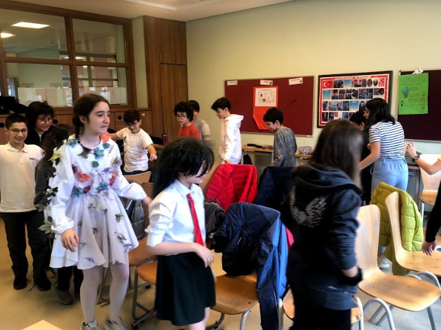 Öğrencilerimiz kendilerine özgü ilginç kostümleri ile katıldıkları etkinliğimizde şarkılar, danslar ve yarışmalarla oldukça keyifli dakikalar geçirdiler.