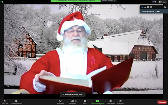 Beim Vorleseabend mit Frau Ottawa kommt sogar der Nikolaus persönlich mit einer Grußbotschaft an die IELEV- Schüler vorbei!