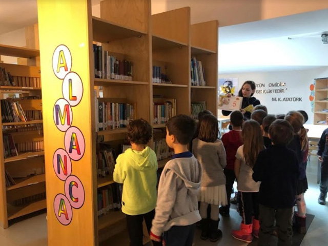 1. Sınıflar olarak cuma günü Almanca dersimizi kütüphanede yaptık. Öğrencilerimiz bu derste seviyelerine uygun Almanca kitaplarının nerede olduğunu, kitap seçimlerini yaparken nelere dikkat etmeleri gerektiğini öğrendiler. Ardından Almanca öğretmenlerinin okuduğu kitap üzerine soru-cevap etkinliği yaparak önceki bilgilerini pekiştirdiler.