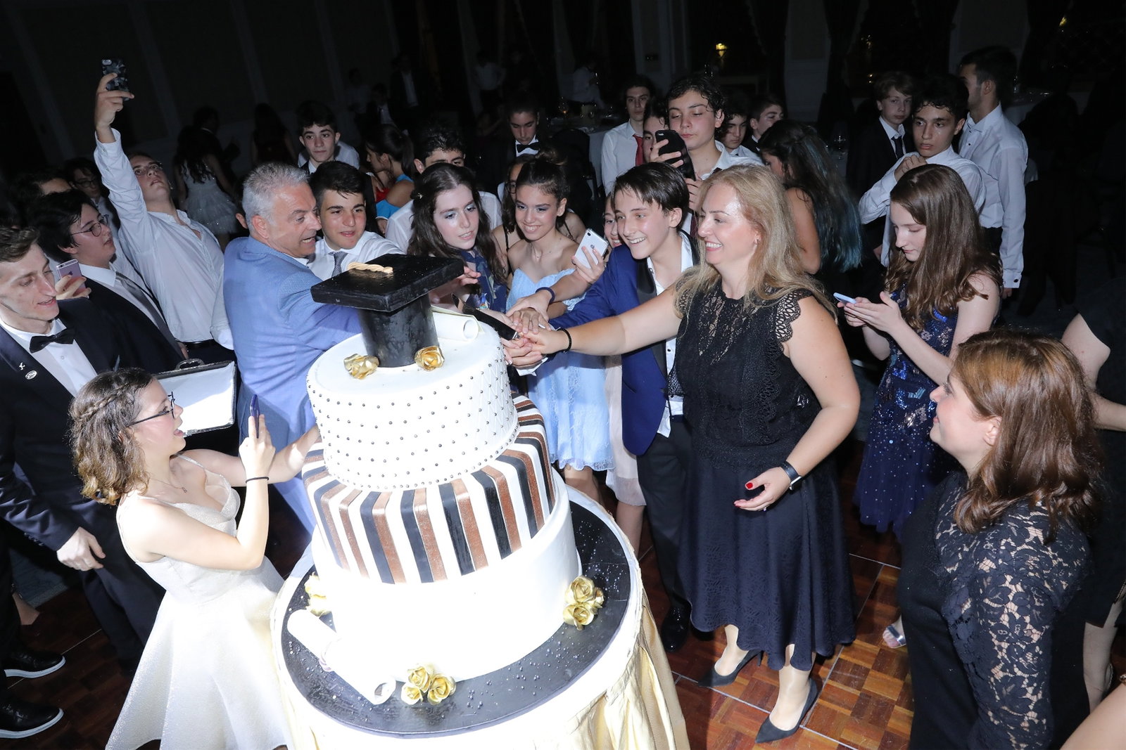 Öğrencilerimiz, bu özel gün için hazırlanan mezuniyet pastasını gecenin bitimine yakın büyük bir keyifle kestiler. Pasta kesiminin ardından balomuz sona erdi.