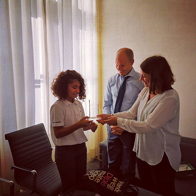 Dünya Birincisi Deniz’in hikayesi ve en çok beğenilen diğer hikayeler Dışişleri Bakanlığı tarafından yayınlanan e-kitapta yer aldı. Öğrencimiz ayrıca, Alman Konsolosluğu tarafından ağırlanarak plaket ve hediye çeki ile ödüllendirildi.