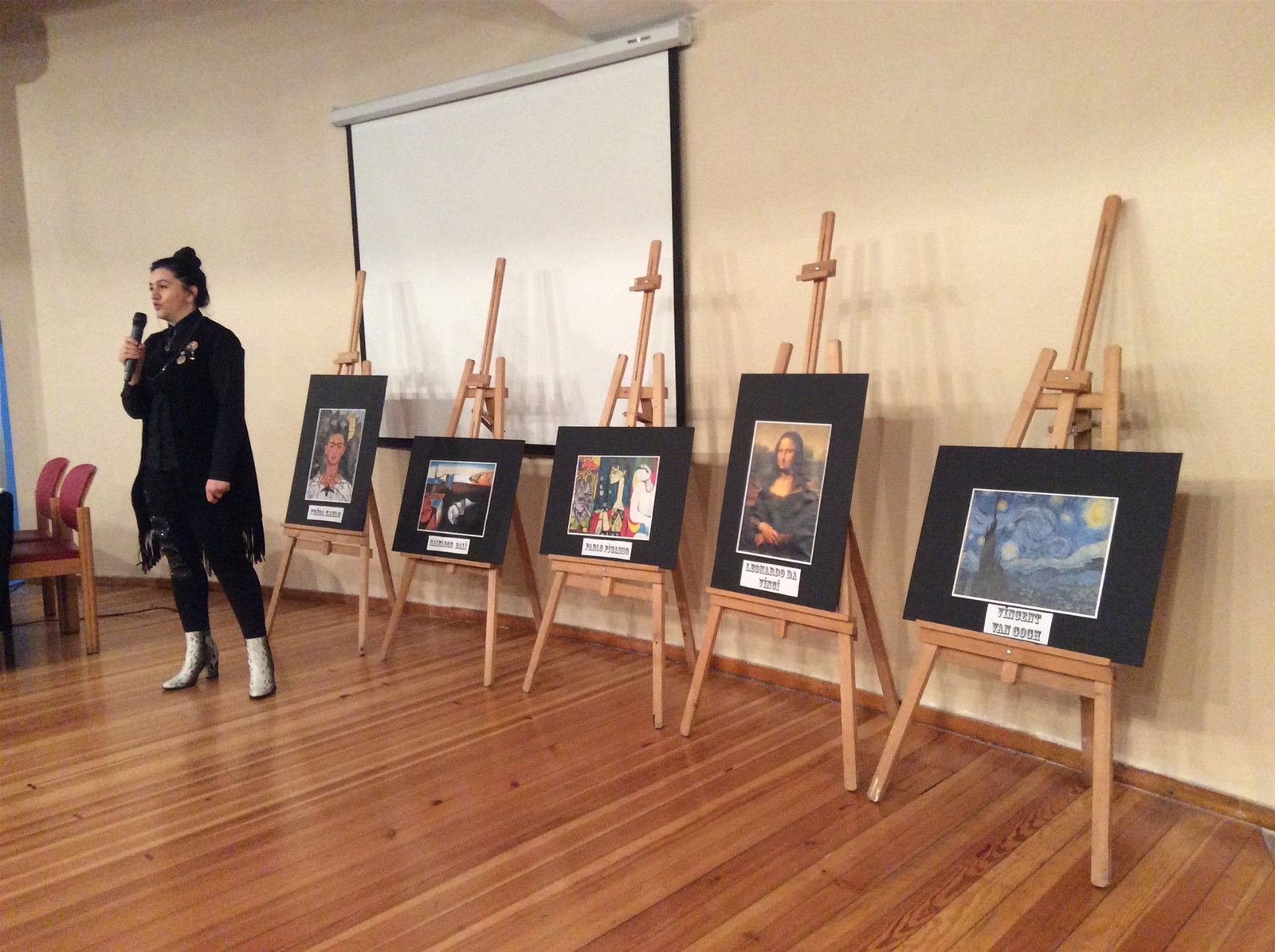 26 Mart 2019 Salı günü, Görsel Sanatlar Bölümü tarafından düzenlenen “Ressamları Tanıyorum” etkinliğinde 2.sınıf öğrencilerimizden Yusuf Kemal KİLİMCİ, Kerem SOYSAL, Ali Deniz ELMASULU, Sarp OKAN, Melek Leyla BELGİN ünlü ressamlardan Dali, Van Gogh, Picasso, Leonardo Da Vinci ve Frida Kahlo’yu tanıttıkları bir sunum yaptılar. Öğrencilerimizi bu güzel sunumlarından dolayı kutlarız.