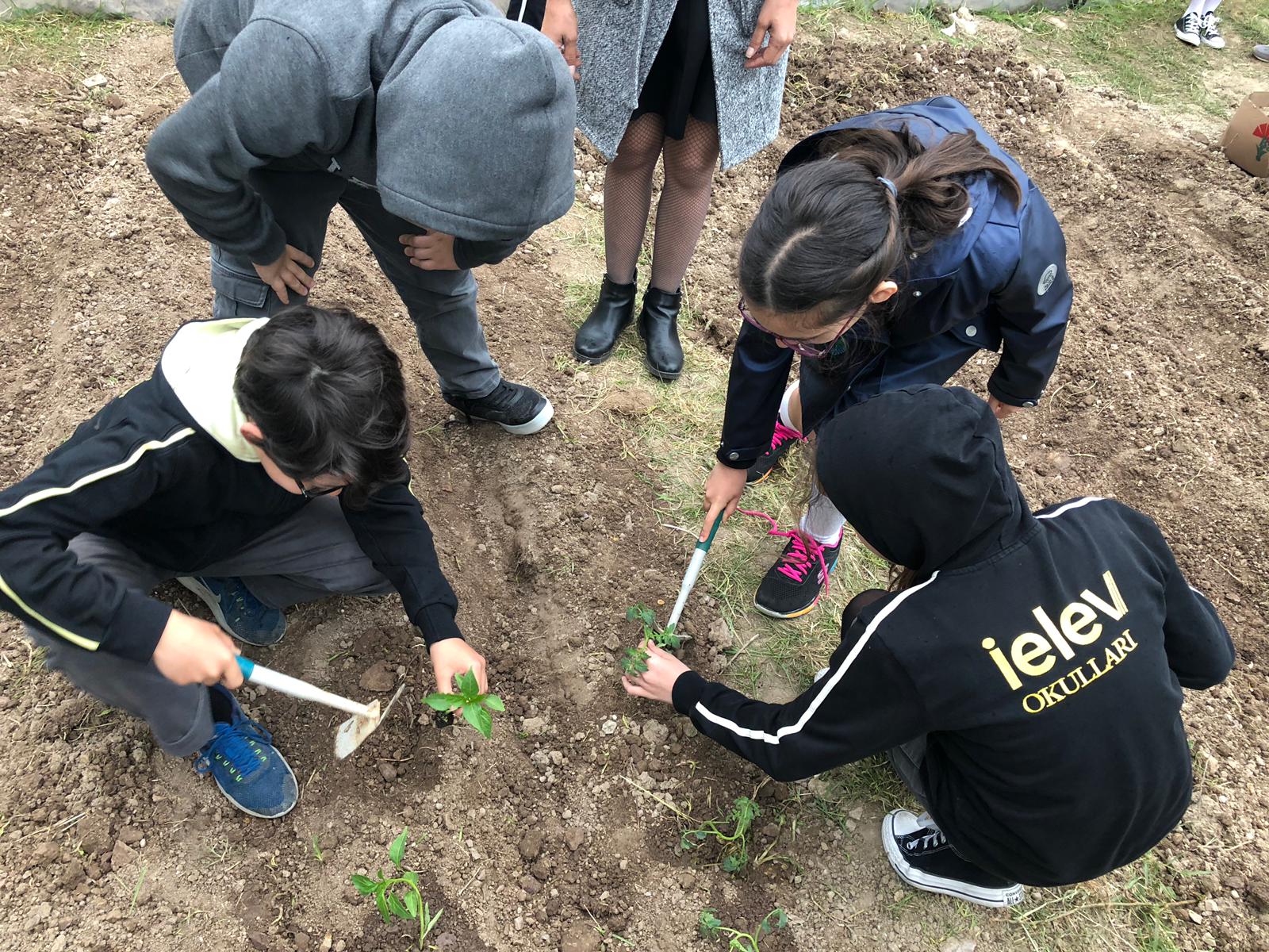 5. sınıf öğrencilerimiz; fen bilimleri dersi kazanımları ile ilişkili olarak bir bitkinin büyüme sürecini takip etme amacıyla maydanoz, mısır gibi bitkilerin tohumlarını ekmekten; domates ve biber gibi bitkilerin fidelerini dikmekten çok keyif aldılar.