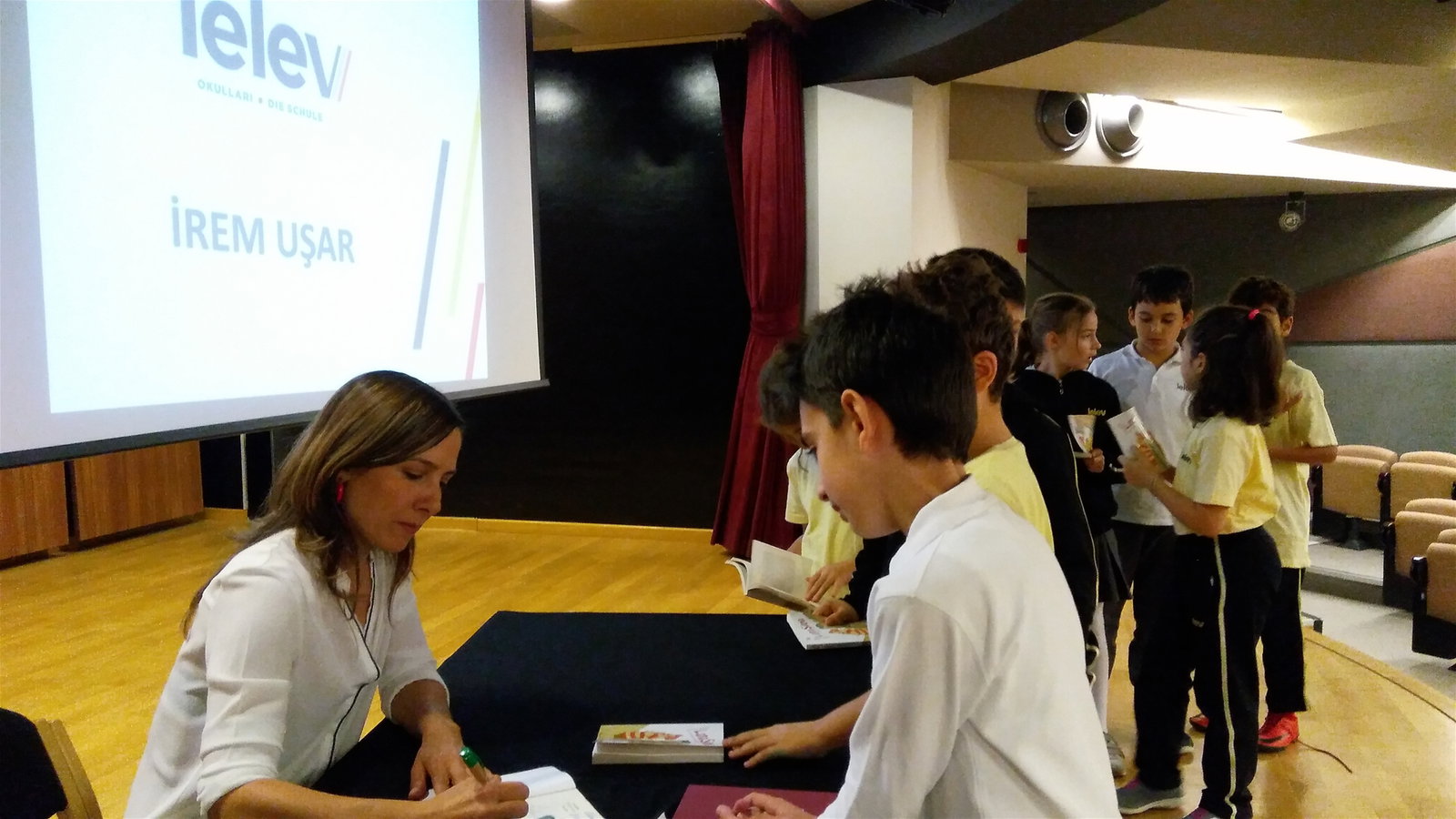 12 Kasım 2019 Salı günü, 4. sınıf öğrencilerimiz “Lataşiba” kitabının yazarı İrem Uşar ile buluştu. Dünya Çocuk Kitapları Haftası kapsamında gerçekleşen etkinliğimizde Çocuk Edebiyatının dikkati çeken genç yazarlarından İrem Uşar öğrencilerimizin merak içeren sorularını içten bir şekilde yanıtladı. Yazarımızın öğrencilerimizin kitaplarını imzalamasıyla ekinliğimiz son buldu.